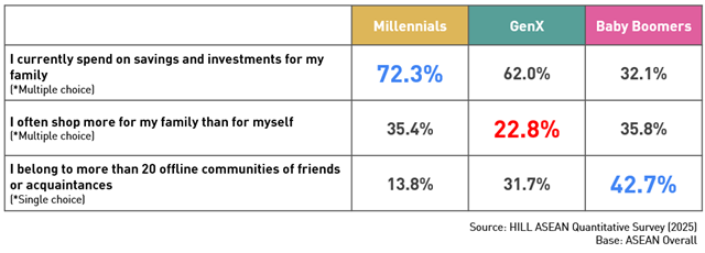 Base: ASEAN Overall *Weighted sample size. Gen Z (n=963), Millennials (n=1,619), Gen X (n=1,187), and Baby Boomers (n=430)