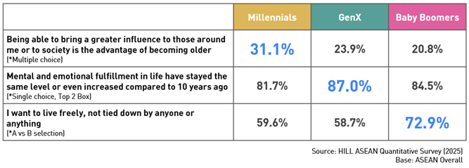 The most compelling finding from this research is the fundamental shift in how ASEAN sei-katsu-sha perceive aging. In today’s ASEAN, growing older is no longer viewed as a “decline”; rather, each generation is “blossoming”—proactively leveraging the region’s distinctive social and familial ties to move beyond individual fulfillment and redefine their sense of purpose and identity in pursuit of a richer, more meaningful life.