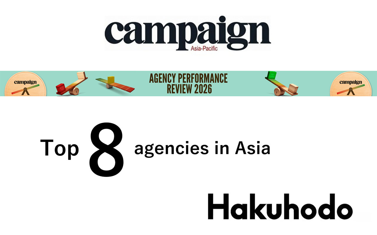 We are proud to share that Hakuhodo has been ranked among the Top 8 agencies in Asia and awarded “Top Tier” status in the Campaign Asia-Pacific Agency Performance Review 2026, reinforcing our position as a leading agency across the region. This recognition reflects our continued strength in innovation and creativity, as well as our deep commitment to sustainability and delivering meaningful value to our clients and society.