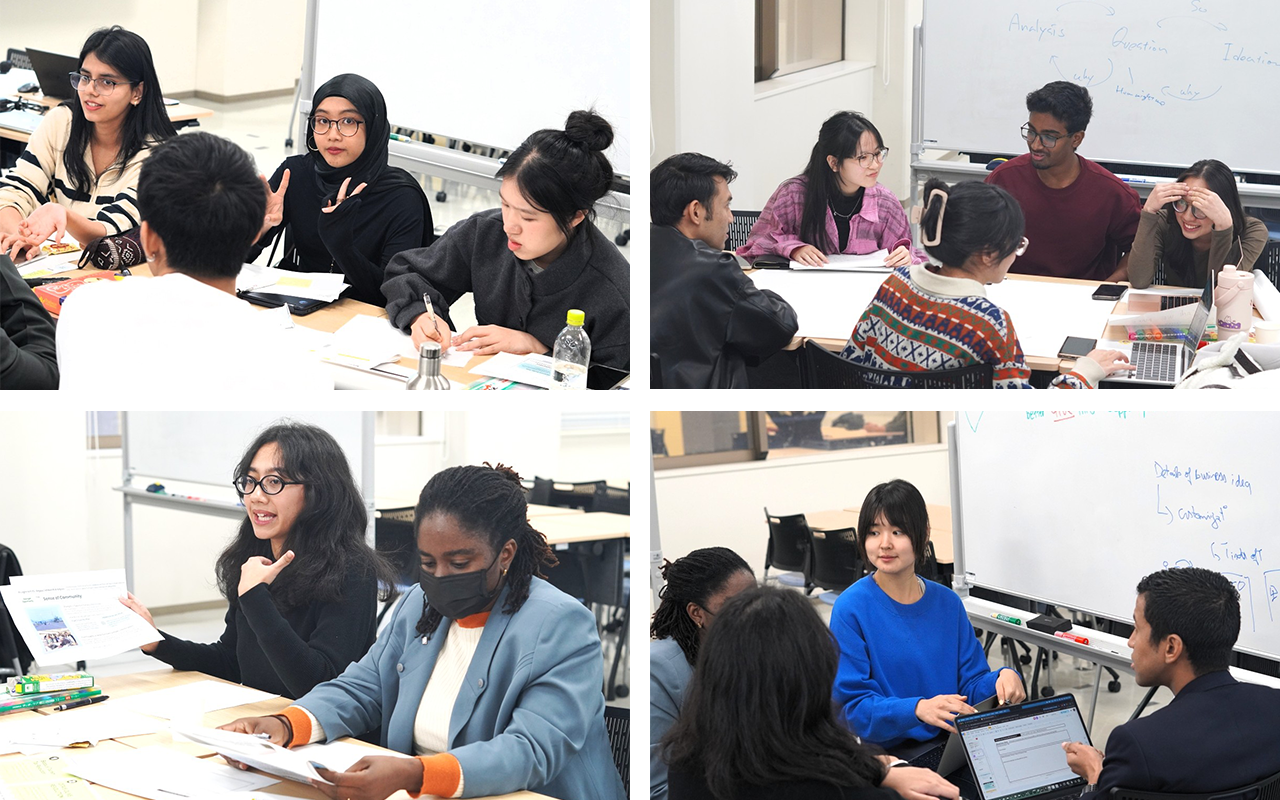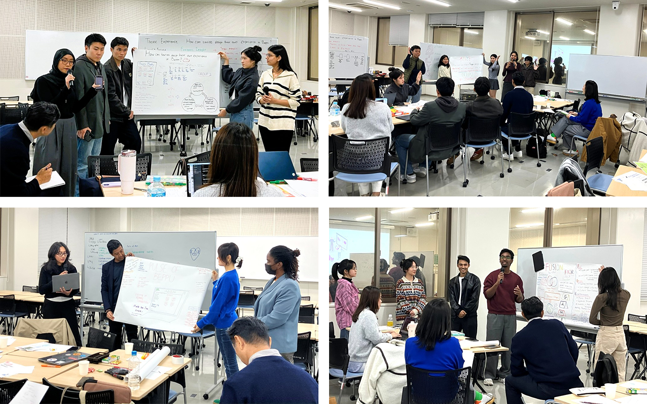 The topic of the group work was Beppu, where APU is located. The assignment was to generate business ideas that build win-win relationships between foreign tourists and Beppu residents, a regional challenge Beppu actually faces.
