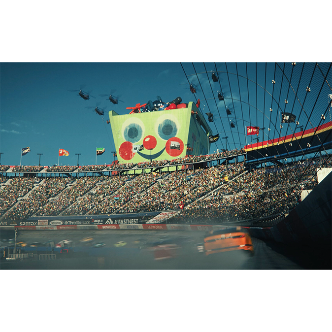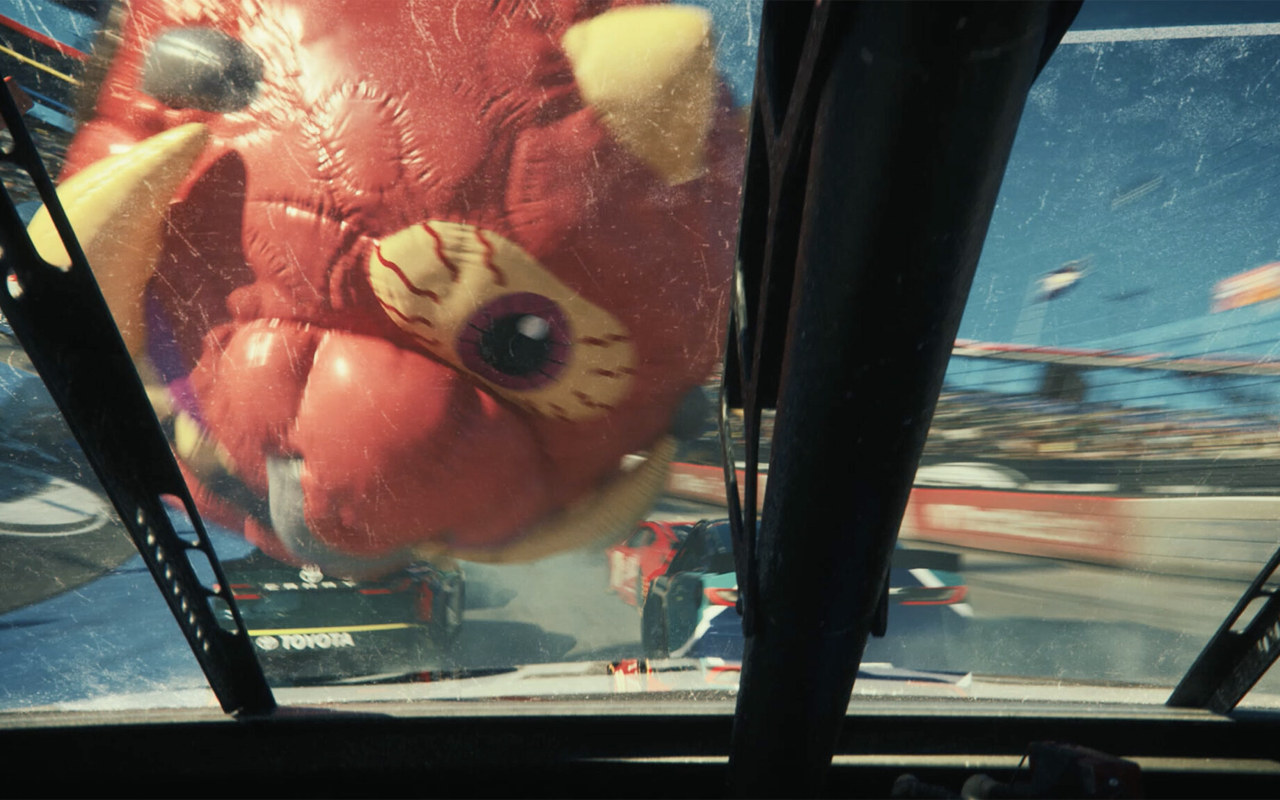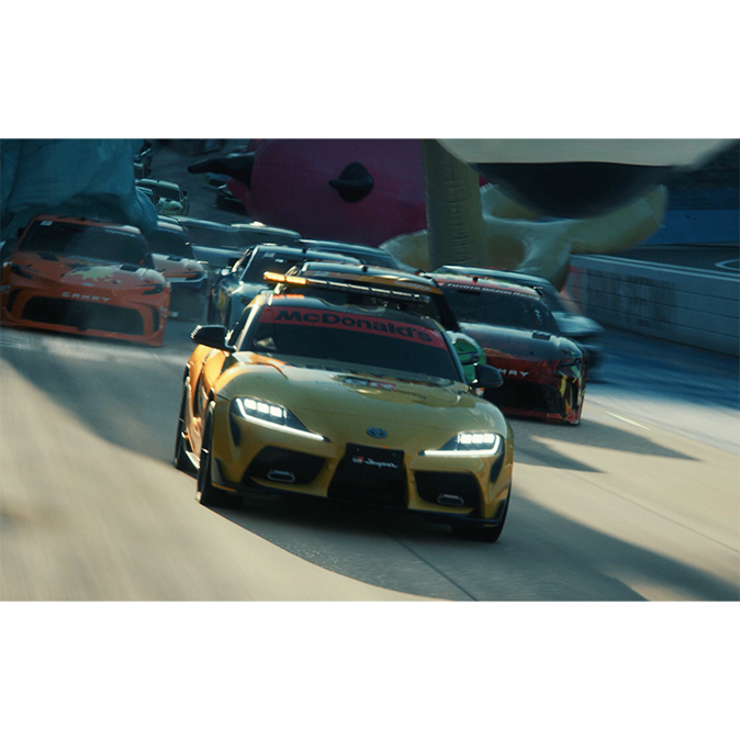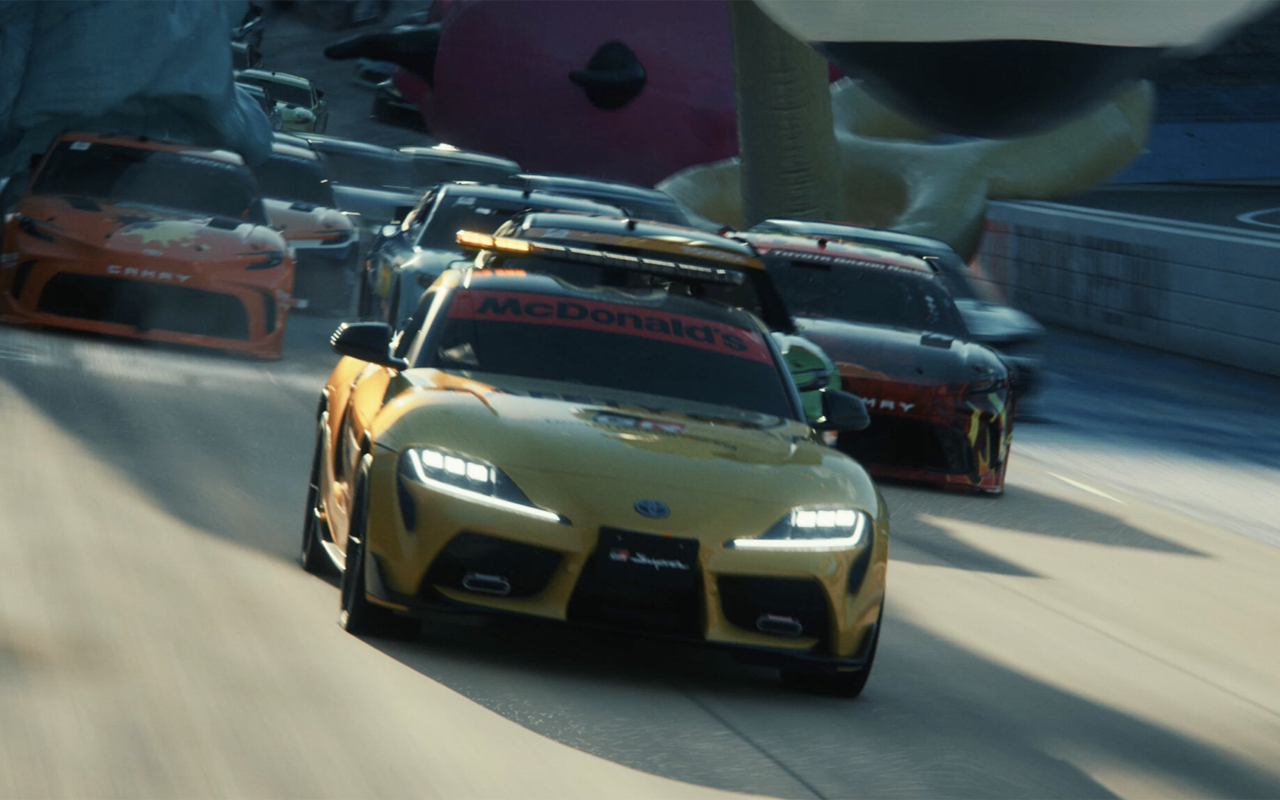 In order to transform GR’s safety car into a hero, we portrayed its role—“leading race cars whenever danger arises on the track”—as the ultimate form of entertainment. Set against the backdrop of NASCAR, one of the most intense racing series in the world, the film unleashes the most fantastical and spectacular disruption imaginable: giant toy balloons suddenly rain down onto the circuit. In the midst of the ensuing chaos, the GR safety car makes a dramatic entrance, restoring control and order to the track.